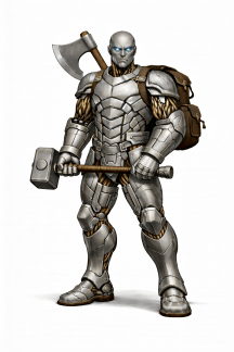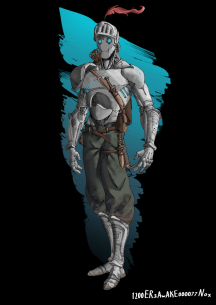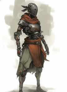 У меня была идея персонажа — человека-киборга в броне крестоносца, с красным ромбом в качестве герба на ней. Он из другой вселенной, где человечество одолело эльфов, державших людей в рабстве. Должен был отправиться на подмогу в прошлое, но оказался в этом мире. Мультикласс воина и варвара. Причём ему «срывает башню» каждый раз, когда он видит эльфа, и он хочет его убить.