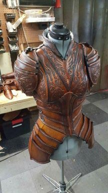 Кожаный. Нагрудник и плечи этого доспеха изготовлены из кожи, вываренной в масле. Остальные части доспеха сделаны из более мягких и гибких материалов.