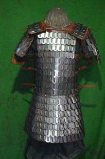 Чешуйчатый доспех. Этот доспех состоит из кожаной куртки и поножей (а также, возможно, отдельной юбки), покрытых перекрывающимися кусочками металла, похожими на рыбью чешую. В комплект входят рукавицы.