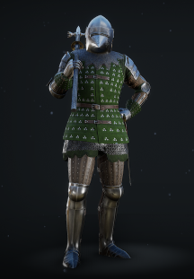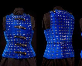 Кольчуга. Изготовленная из переплетающихся металлических колец кольчуга включает также слой стёганой ткани, надеваемой под низ, дабы предотвратить натирание и смягчать удары. В комплект входят рукавицы.