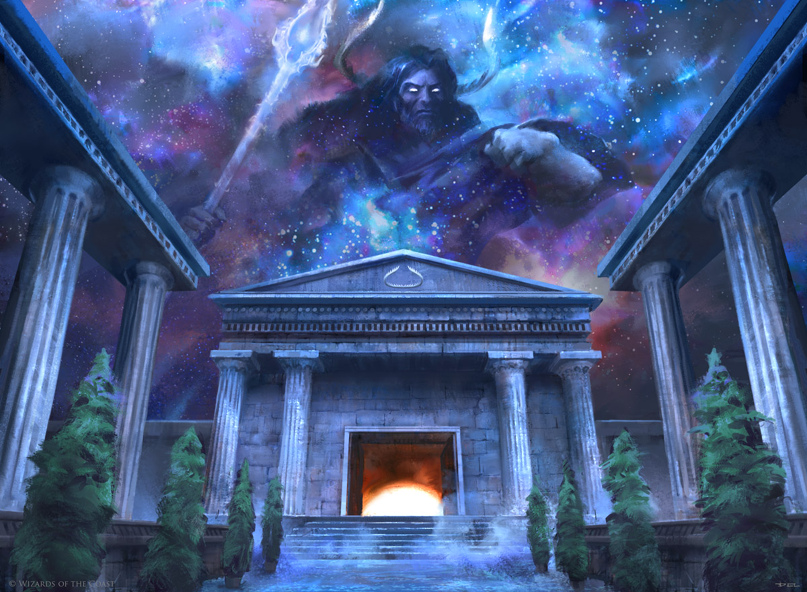 Построенный на широком высокогорном плато, храм образует громадный полукруг на площадке из звёздчатого мрамора. Его расположение на вершине горы Кариан позволяет без помех созерцать четыре стороны горизонта. Святилище украшают статуи богов, поборников и оракулов, и для каждого божества в отдельной нише установлен алтарь. От этих алтарей поднимаются исполинские столбы света, растворяясь в звёздном ночном небе. Невидимые в небесах над головой, эти столбы соединяются со своими отражениями в точно таком же храме у входа в Нюкту — своего рода прихожей в божье царство. Те немногие храбрецы, которым удаётся совершить паломничество в Никт и уснуть на вершине горы, видят невероятно яркие сны о божественных созданиях, порой беседуя с самими богами или обретая видения грядущего.