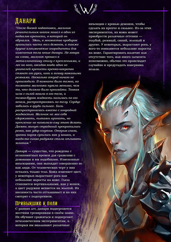 "Демоны, исчадия, твари состоящие из хаоса и негативной энергии... Настал тот день, когда и вы познаете что такое страх. То, с какой лёгкостью вы обрывали людские жизни, воздастся вам в сто крат и поверьте, если смерть вам не страшна, то повстречав данари, вы будите молить о ней, но в ответ будет лишь холодный взгляд."