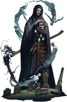 Окутанный великан смерти узнал секреты магии смерти — некоторые говорят, что от самой королевы Воронов. Окутанный собирает черепа павших сородичей и наносит руну смерти на лучшие лучшие черепа из своей жуткой коллекции. Отказавшись от доспехов в пользу мрачных одежд, окутанный использует рунную магию, чтобы создавать призрачное лезвие косы на конце посоха и призывать ауру измученных душ для защиты.