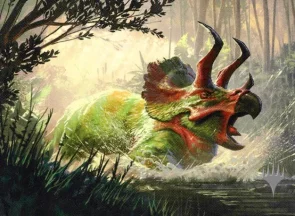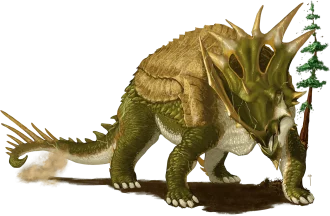 Простирающийся более чем на 200 футов от кончика своего огромного носового рога до конца остроконечного хвоста, цератопс сверкает линиями яркой зеленой энергии на своей покрытой толстой чешуей шкуре. Один только его рог больше, чем большинство великанов, к тому же цератопс может сокрушать ногами древние леса, когда приходит в ярость.
