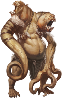 - БигбиНекоторые легенды утверждают, что первыми эттинами были орки, преобразованные Демогоргоном, принцем Демонов, в то время как другие связывают их происхождение с Гролантором или другим богом Уложения. Какой бы ни была правда об их происхождении, эттины иногда распознают родственную душу в двуглавом Демогоргоне и посвящают себя служению ему. Те, кто оказывается исключительно ценным для целей Демогоргона на Материальном плане, вознаграждаются “благословением”, которое превращает их в чудовищные отголоски их демона-покровителя.