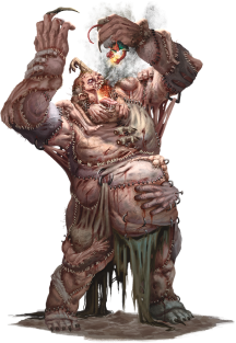 На заре империи великанов извращенные умы стремились заставить своих павших товарищей продолжить службу. Великаны-волшебники сшивали и переплетали плоть различных великанов поверх адамантинового скелета, создавая ужасающего колоссального конструкта. Внутри груди мясного колосса находится каменная сфера, наполненная духами с каждого элементального плана, выступающая в качестве его ядра.