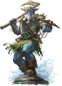 Ольгидра дарует этим ледяным великанам способность дышать под водой, а также доспехи и оружие, отражающие их приверженность культу. Их доспехи снабжены огромными арбалетами, которые могут запускать зазубренные гарпуны, которые великаны используют, чтобы затаскивать врагов в воду или протаскивать через нее.