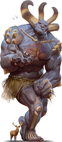 Время от времени — возможно, раз в поколение, при определенной конфигурации звезд и планет или по прихоти какого-либо злого бога — у родителей-великанов рождается исполин. Хотя ребенок выглядит как любой другой представитель своего вида, истинная природа существа проявляется по достижении совершеннолетия: его цвет лица становится пурпурным, а на голове вырастают рога. Исполин быстро растет, в конце концов возвышаясь над другими великанами с высоты в 40 футов и более.