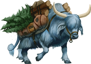 Гигантские волы работают в качестве вьючных животных для всех великанов. Они тянут плуги, тащат крупногабаритные повозки и выполняют иные задачи, хорошо соответствующие их огромной силе. Этот крупный рогатый скот покрыт толстой мохнатой шкурой, часто ярких цветов, таких как небесно-голубой или темно-фиолетовый.