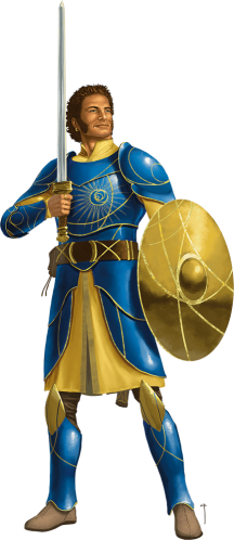 Длинный меч. Рукопашная атака оружием: +7 к попаданию, досягаемость 5 футов, одна цель. Попадание: 8 (1к8 + 4) рубящего урона плюс 4 (1к8) урона излучением. При результате на кости "19" или "20" Джаред совершает критическое попадание.