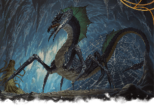 Жуткие создания, известные как паукодраконы, впервые были обнаружены в самых глубоких уголках Подземья и ведут своё происхождение от вирмлингов чёрного дракона [black dragon wyrmling], которые постоянно питались пауками. Хотя они и не были созданы в Бездне или служителями Лолс, последователи Паучьей Королевы утверждают, что паукодраконы — это дар их божества, так как они наиболее многочисленны в тех районах Подземья, которые слуги Лолс считают своими. Последователи Лолс обычно нанимают паукодраконов в качестве охранников или обращаются с ними как с почтенными гостями. Однако эти существа не так могущественны, как их прародители — чёрные драконы, и часто истощают ресурсы анклавов своими эгоистичными требованиями.