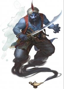 Гордые, эмоциональные гении со Стихийного Плана Воздуха. Джинны — это привлекательные, хорошо сложённые, высокие гуманоиды с синей кожей и тёмными глазами. Они одеваются в невесомые мерцающие шелка, которые не только удобны, но и хорошо подчёркивают их мускулатуру.
