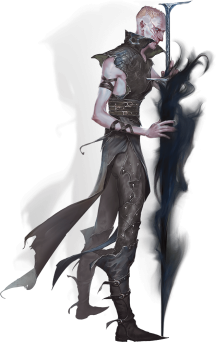 Теневой меч. Рукопашная атака оружием: +5 к попаданию, досягаемость 5 фт., одна цель. Попадание: 14 (2к10 + 3) урона некротической энергией.