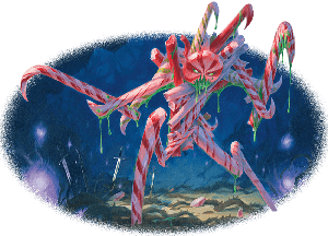 Карамельная тросточка. Рукопашная атака оружием: +6 к попаданию, досягаемость 10 фт., одна цель. Попадание: 8 (1к8 + 4) дробящего урона. Если цель — существо Большого размера или меньше, ужас может не наносить урона; вместо этого цель падает ничком, и ужас может притянуть цель к себе на 5 футов.