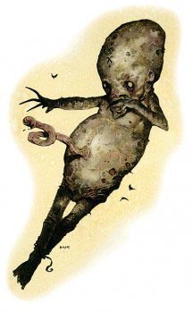Атропал уродлив и не закончен. Его влажное, сморщенное и раздутое тело увенчано большой, безволосой головой с остеклянелыми глазами. Из его рта постоянно текут слюни и вонючая сукровица. Его руки очень тонкие, с крошечные ладонями, заканчивающимися жёсткими, сформированными ногтями.