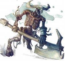 Секира. Рукопашная атака оружием: +6 к попаданию, досягаемость 5 футов, одна цель. Попадание: Рубящий урон 17 (2к12 + 4).