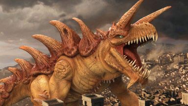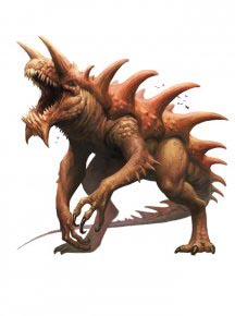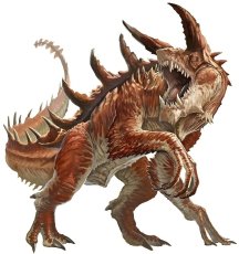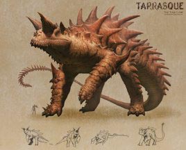 Чешуйчатый и двуногий тараск достигает 50 футов в высоту, 70 футов в длину и весит сотни тонн. Он двигается словно хищная птица, наклонившись вперед и используя свой мощный, хлещущий хвост для равновесия. Его пасть, напоминающая пещеру, распахивается достаточно широко, чтоб проглотить что угодно, кроме самых огромных существ. И голод его настолько велик, что он может сожрать население целого города.