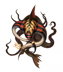 - Воды в пределах 90 футов от аболета формируют водоворот. Все стоящие на земле в пределах 20 футов от такого водоворота существа должны преуспеть в спасброске Силы Сл 14, иначе будут утянуты на расстояние до 20 футов в воду и сбиты с ног. Аболет не может использовать это действие логова снова, пока не использует другое.