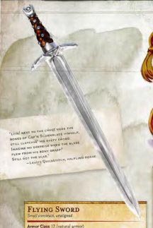 Летающий меч танцует в воздухе с уверенностью воина, которого нельзя ранить. Мечи — наиболее распространенное оружие, которое оживляют при помощи магии. Топоры, дубины, кинжалы, булавы, копья и даже самозарядные арбалеты тоже можно встретить в качестве оживленного предмета.