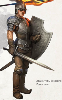 Хранители Вечного Пламени очарованы силой огня и сами жаждут показать врагам культа, каково это — когда тебя охватывают языки пламени. Они любят поджигать всё подряд, делая это во славу стихии огня, а иногда для собственного удовольствия, но эти олухи редко думают о том, что пламя может перекинуться на что-нибудь важное поблизости.