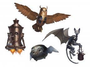 Вы определяете внешность гомункула. Некоторые изобретатели предпочитают механических птиц, тогда как другим нравятся крылатые склянки или миниатюрные котелки.