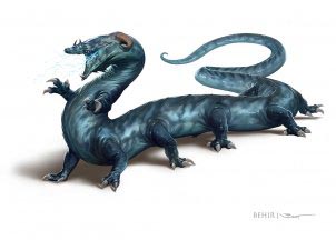 Змееподобный бехир ползает по полу и лазает по стенам, чтобы схватить свою добычу. Его электрическое дыхание может сжечь большинство существ, а более сильных противников он сжимает, обернувшись вокруг них кольцами, и съедает заживо.