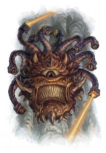 Лучи из глаз. Бехолдер испускает три магических луча из глаз, выбранных случайным образом (перебрасывая повторяющиеся результаты), выбирая от одной до трех целей, видимых в пределах 120 футов:
