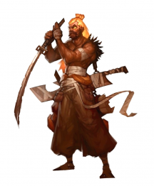 Ятаган. Рукопашная атака оружием: +5 к попаданию, досягаемость 5 футов, одна цель. Попадание: 6 (1к6+3) рубящего урона.