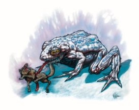 Морозная аура. Любое существо, начинающее ход в 5 футах от жабы получает урон холодом 3 (1к6).