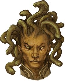 Змеи-волосы. Рукопашная атака оружием: +6 к попаданию, досягаемость 5 фт., одна цель. Попадание: колющий урон 7 (1к8 + 3) плюс урон ядом 14 (4к6).
