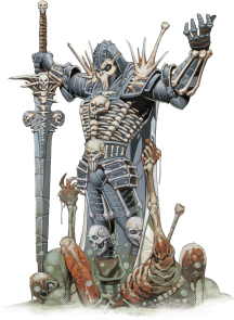 Преданные паладины Крови Вол были закованы в доспехи из кости, чья магия фокусировала их божественные дары, позволяя им командовать отрядами нежити. Костяные доспехи нельзя снять, не убив рыцаря, который их носит, и, надевая их, каждый костяной рыцарь понимал, что его прежняя жизнь закончилась.