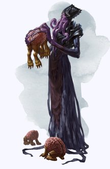 Щупальца. Рукопашная атака оружием: +7 к попаданию, досягаемость 5 футов, одно существо. Попадание: Урон психической энергией 15 (2к10 + 4). Если размер цели не больше Среднего, она становится схваченной (Сл высвобождения равна 15) и должна преуспеть в спасброске Интеллекта Сл 15, иначе станет ошеломленной, пока не перестанет быть схваченной.