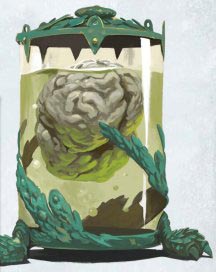 Сосуды бессмертия. Мозг плавает в банке с консервантом, пульсациями реагируя на окружение. Нередко некоторые мозги начинают биться о стенки своих банок, когда они возбуждены или раздражены. Металлический корпус банки может быть ржавым, но всё еще крепким или изящно выполненным шедевром, в зависимости от его создателя. Мозг в банке весит примерно 125 фунтов.
