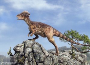Этот двуногий травоядный динозавр имеет куполообразный череп, которым бодается с другими пахицефалозаврами во время брачных игр. Также он бодает угрожающих хищников.