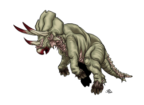 Зомби трицератопсы могут казаться полностью спокойными, но когда они чуют живое существо, немёртвый зверь атакует с яростью, которой никогда не знал при жизни.