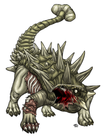 Толстые защитные пластины покрывают тело травоядного анкилозавра, способного самостоятельно защищаться от хищников с помощью увесистого навершия на хвосте, наносящего разрушительные удары. Некоторые разновидности анкилозавра встречаются с украшенным шипами хвостом, который причиняет колющий урон вместо дробящего.