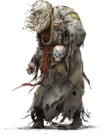 Цеп с черепом. Рукопашная атака оружием: +2 к попаданию, досягаемость 5 футов, одно существо. Попадание: 4 (1к8) дробящего урона.