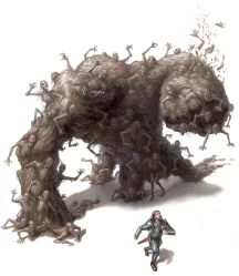 Погребение под плотью (перезарядка 5-6). Зомби бросает оторванную кучу трупов в существо, которое он может видеть в пределах 30 футов от себя. Цель должна преуспеть в спасброске Силы Сл 16 или получит (3к10) дробящего урона, и если цель — Большое или меньшего размера существо, она становится погребённым в мёртвой плоти.