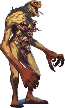 Ужасающий скрежет. Рты изничтожителя бессвязно скрежещут, пока он может видеть каких-либо врагов. Каждое существо, которое начинает свой ход в пределах 20 футов от изничтожителя и может его услышать, должно совершить спасбросок Мудрости Сл 16. Если спасбросок провален, то существо бросает к8, чтобы определить, что оно делает во время текущего хода: