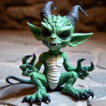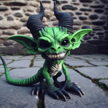 Квазит может предстать в животном облике, но в истинном виде он выглядит как 2-футовый зеленый гуманоид с колючим хвостом и рогами. Когти на руках и ногах квазита содержат раздражающий яд. Нападая, он предпочитает быть невидимым.