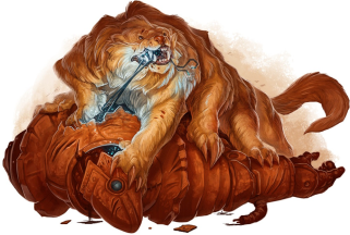 Коготь. Рукопашная атака оружием: +5 к попаданию, досягаемость 5 футов, одна цель. Попадание: 5 (1к6 + 2) рубящего урона. Если целью является существо Среднего размера или меньше, оно становится схваченным (Сл высвобождения 12). Пока этот захват не закончится, златожор не может использовать свою атаку Когтями против другой цели, а когда он перемещается, он может тащить за собой захваченное существо, при этом скорость златожора не уменьшается вдвое.