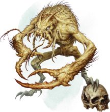 Аура страха. Любой зверь или гуманоид, который начинает свой ход не далее 10 футов от минлока, должен успешно пройти спасбросок Мудрости Сл 11, иначе станет испуган до начала своего следующего хода.