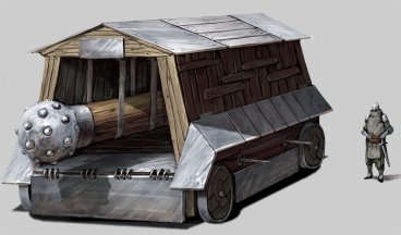 Требуется как минимум четыре существа Среднего размера, чтобы орудовать тараном. Благодаря крыше сверху эти существа обладают полным укрытием от атак сверху.