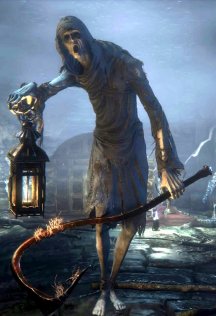 Человекоподобные монстры в синей одежде в капюшоне, похожие на ходячий труп - их кожа имеет синюшный оттенок. У этих смотрителей могил лицо, словно застывшая маска, их рот всегда открыт, чёрные глаза ищут нарушителей покоя подземелья.