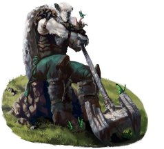 Каменный страж Ашари. Ашари Земли из Терры - стоический народ, медленно меняющийся и склонный скорее к оборонительным сражениям и изживанию врагов, чем к наступательным войнам. Каменные стражи Терры - идеальное воплощение этого идеала: их друидическая подготовка дополнена древними боевыми приемами, которые позволяют им стойко держаться против натиска врагов. Каменные стражи изготавливают оружие и доспехи из гранита, окружающего их, а их магическое искусство каменщиков превосходит даже дварфов. Говорят, что когда в мифические времена на Экзандрию хлынули армии элементалей, два легендарных каменных стража десять дней и десять ночей защищали всю Терру от этого натиска, каждый из них стоял на страже, пока другой отдыхал.