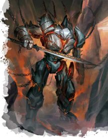 Священная цель. Там, где он возвышается над божественной кузницей, конечности стража кузницы заканчиваются вытянутыми крючковатыми щипцами и украшенным рунами клинком. Голем может помогать кузнецу в создании новых големов, а может топтать, бить, толкать и сбивать с ног тех, кто угрожает этому священному процессу созидания.