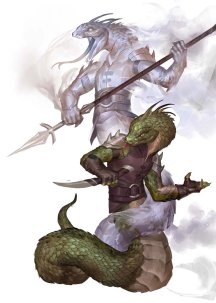 Змеиное общество. Змеелюды занимает отдаленные храмы в джунглях, болотах и пустынях. В их обществе царит строгая дисциплина и иерархия, которая вознаграждает тех, кто наиболее близок к змеям по духу и телу. Змеелюды, преображенные в массивных змей с гуманоидными руками, пользуются величайшим уважением.