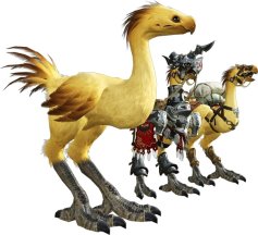 Чокобо — порода нелетающих птиц, дальние родственники топороклювов [axe beak], для которых характерно оперение жёлтого цвета, специфический запах и незабываемый звук чириканья. Люди приручили их за их мягкий нрав и быстрые ноги, используя в домашнем хозяйстве в качестве наземного транспорта.