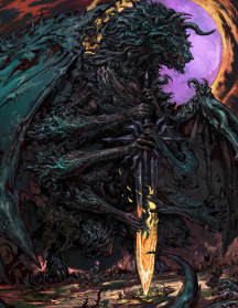 Двуручный меч. Рукопашная атака оружием: +19 к попаданию, досягаемость 10 футов, одна цель. Попадание: 32 (6к6 + 11) рубящего урона и 4 (1к8) урона излучением. Если король дважды за ход наносит урон существу этой атакой, цель должна преуспеть в спасброске Мудрости Сл 25, иначе станет испуганной королём на 1 минуту. Испуганное существо может повторять спасбросок в конце каждого своего хода, оканчивая на себе действие эффекта в случае успеха.