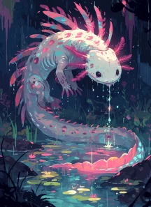 Неуклюжие драконы. Аксалотлю не хватает большинства традиционных драконьих черт, но его врождённая магическая природа и чешуя дракона раскрывают его истинное происхождение. Аксалотли сбросили свои драконьи крылья в пользу внешних стеблей головы и летают, используя магию, чтобы двигаться.
